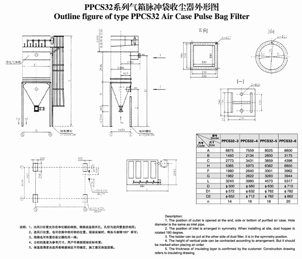 5、收塵器根據(jù)不同規(guī)格,可以是整機(jī)發(fā)運,或以解體形式發(fā)運,其基礎(chǔ)設(shè)計由選用者負(fù)責(zé)。
