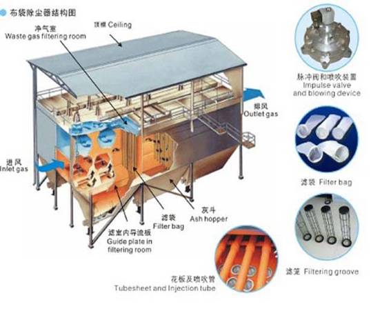長袋脈沖袋式除塵器的主體結構由箱體、袋室、灰斗、進出風口四大部分組成。并配有基礎 支柱、爬梯、欄桿、檢修門、壓縮空氣氣路系統、清灰控制系統、卸灰系統等等,并可根據用戶要求選配先進的設備運行監測系統。