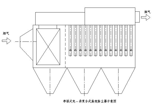 電─袋”收塵器,就是在收塵器的前部設置一個收塵電場,發揮電收塵器收集80-90%粉塵的優點,收集煙塵中的大部分粉塵,而在收塵器的后部裝設濾袋,使含塵濃度低的煙氣通過濾袋,這樣可以大大降低濾袋的阻力,延長噴吹周期,縮短脈沖寬度,降低噴吹壓力,從而大大延長濾袋的壽命。