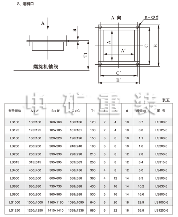 The diameter of type LS screw conveyor is from 200mm to 500mm.They are five specifications which length is 4m to 70m. There will be a shift every 0.5m. When selecting, comply with standard nominal length. If it is special need, mark it in selecting assemble part.