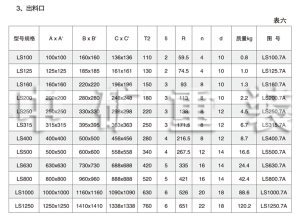 出料口的結(jié)果表示如下圖,系由鋼板折成的方形管及法蘭焊接而成,不帶能關(guān)閉的出料口控制機(jī)構(gòu),在使用時(shí)將出料口焊于機(jī)殼上,其法蘭面與溜槽法蘭相連,裝配出料口的機(jī)殼還應(yīng)按出料口的內(nèi)孔尺寸開孔。