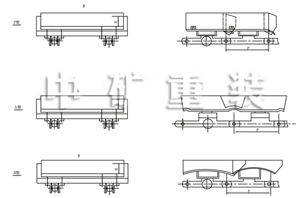P型一輸送槽承載板的縱剖面為平板型,適用于沿水平或傾角小于等于15°輸送塊狀物料。