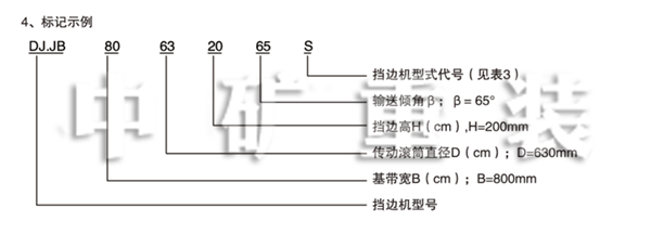 3、規格:按基帶寬B(cm)、檔邊高H(mm)和傳動滾筒直徑D(cm)可以組合成101中規格(見表2)。
